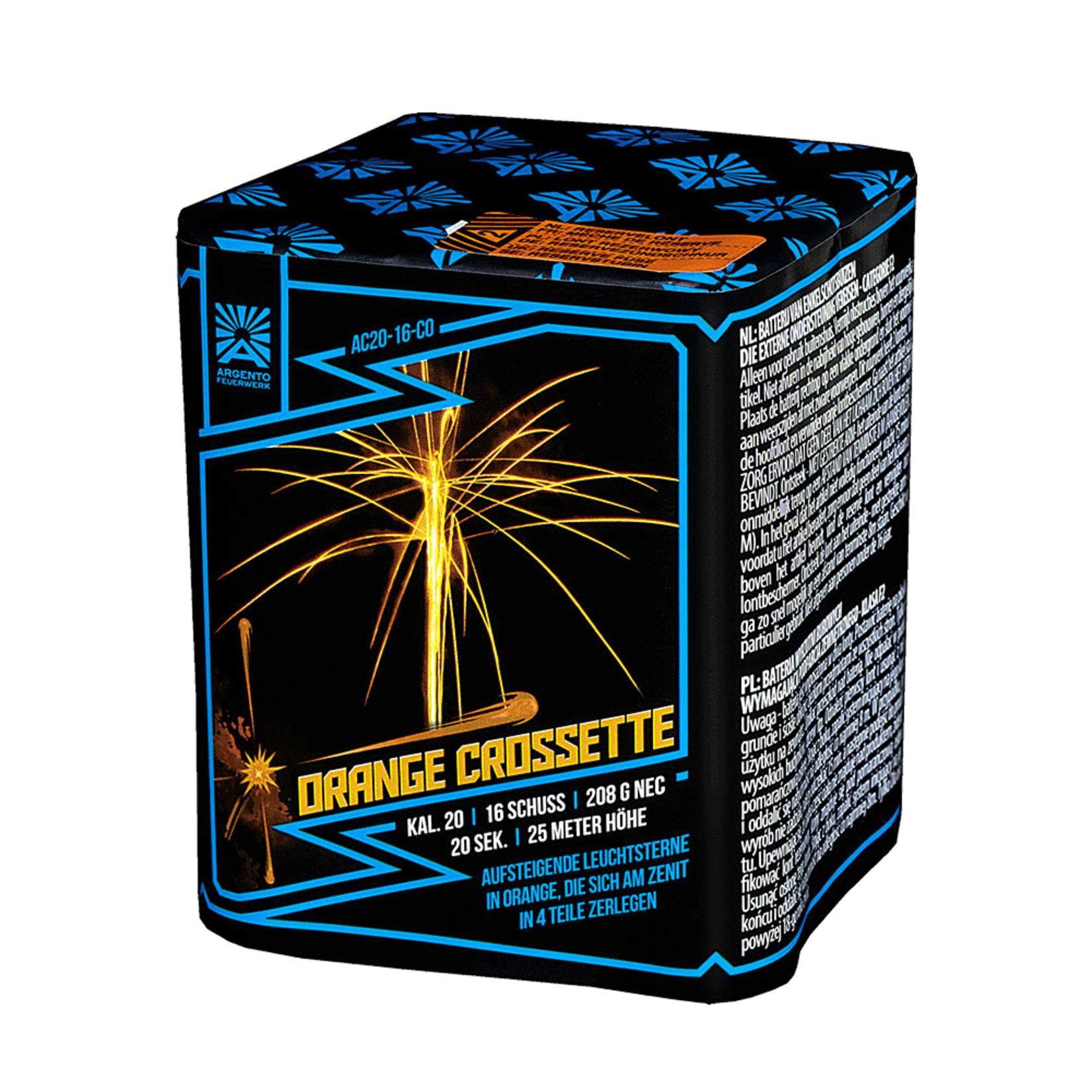 Aufsteigende leuchtende orangefarbene Sterne, die sich am Zenit in vier Teile spalten.